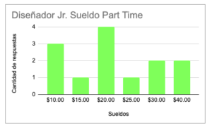 Mientras tanto, hicimos otra encuesta donde preguntamos… ¿Cuánto deberíamos ganar? Y la respuesta promedio para DISEÑADOR JR. fue de $55.000 en mano.