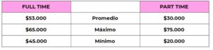 - El sueldo promedio de quienes trabajan FULL TIME es de $53.000, y va desde $45.000 de mínimo a $65.000 máximo